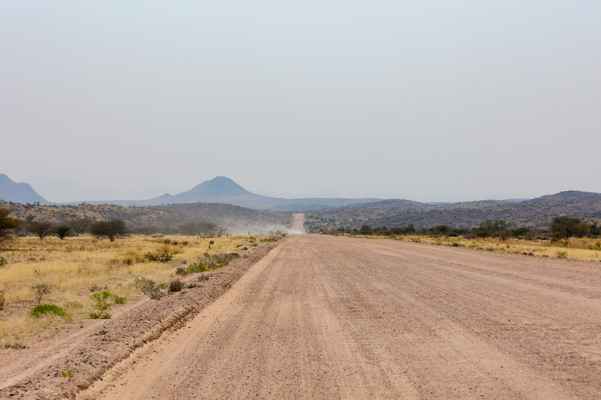 Danach geht es weiter, B 2 nach Westen. Viel Verkehr hier, kannten wir bisher nicht so. Von Karibib bis Usakos zieht sich eine Baustelle ziemlich hin und wir hängen hinter einem Truck fest. Somit verringert sich die maximale Geschwindigkeit von 120 km/h auf 80. Entspannt fahren fühlt sich trotzdem anders an.