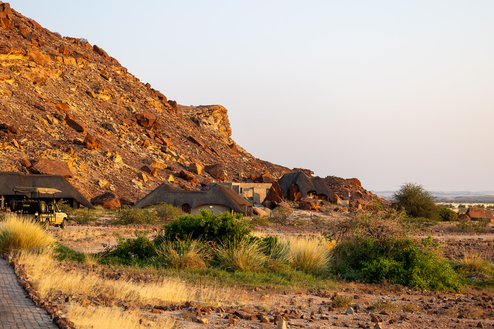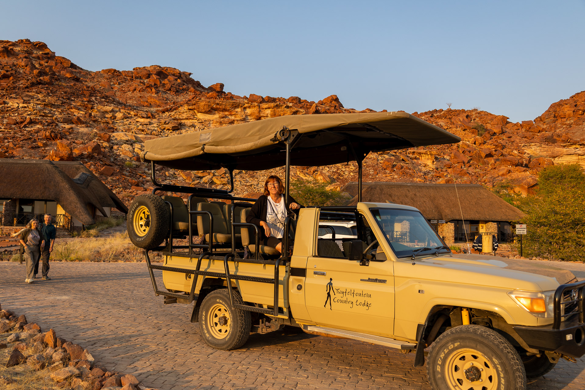 Gegen 14 Uhr erreichen wir die Twyfelfontein Country Lodge. Die Lodge liegt 4 km von der historischen Fundstelle Twyfelfontein mit den berühmten Felsgravuren entfernt und bietet 56 Doppelzimmer an.