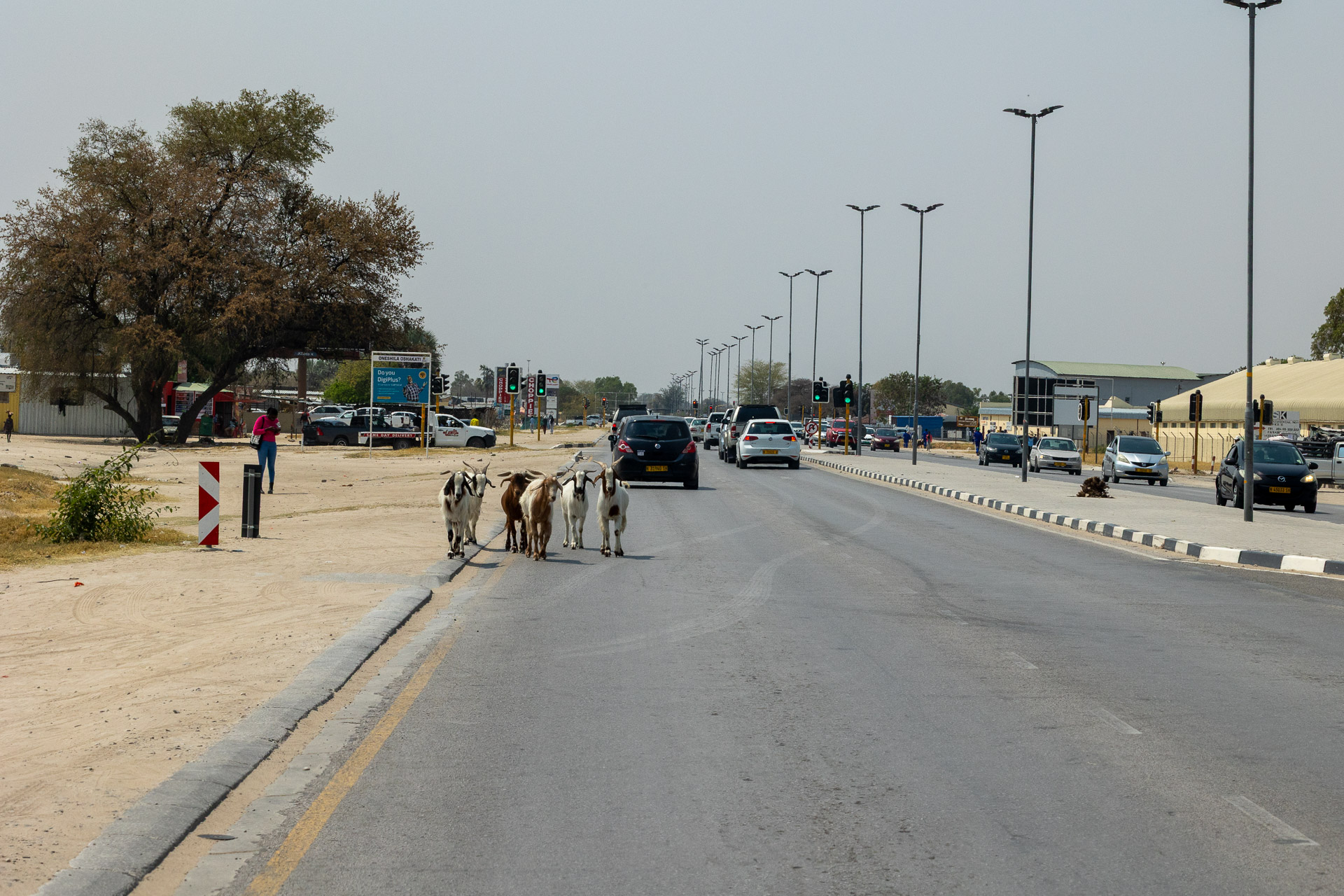 Halb zehn sind wir soweit, haben sogar unser Gepäck alleine runtergewuppt und fahren über Karibib und Okahandja nach Windhoek.