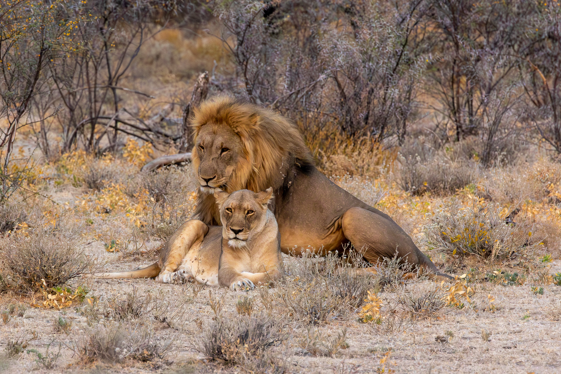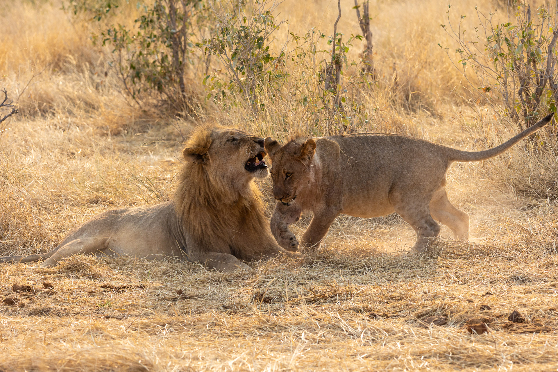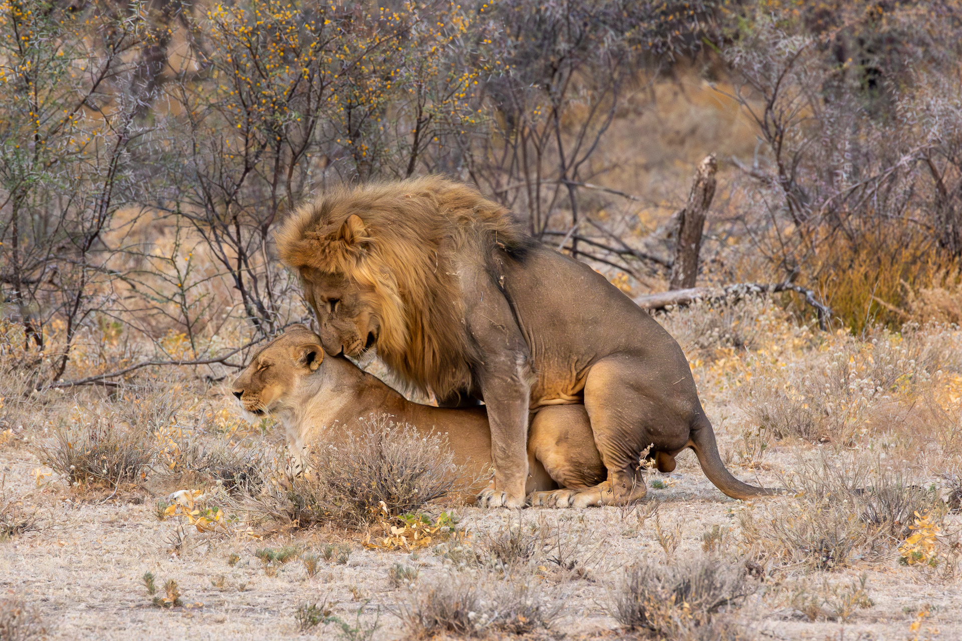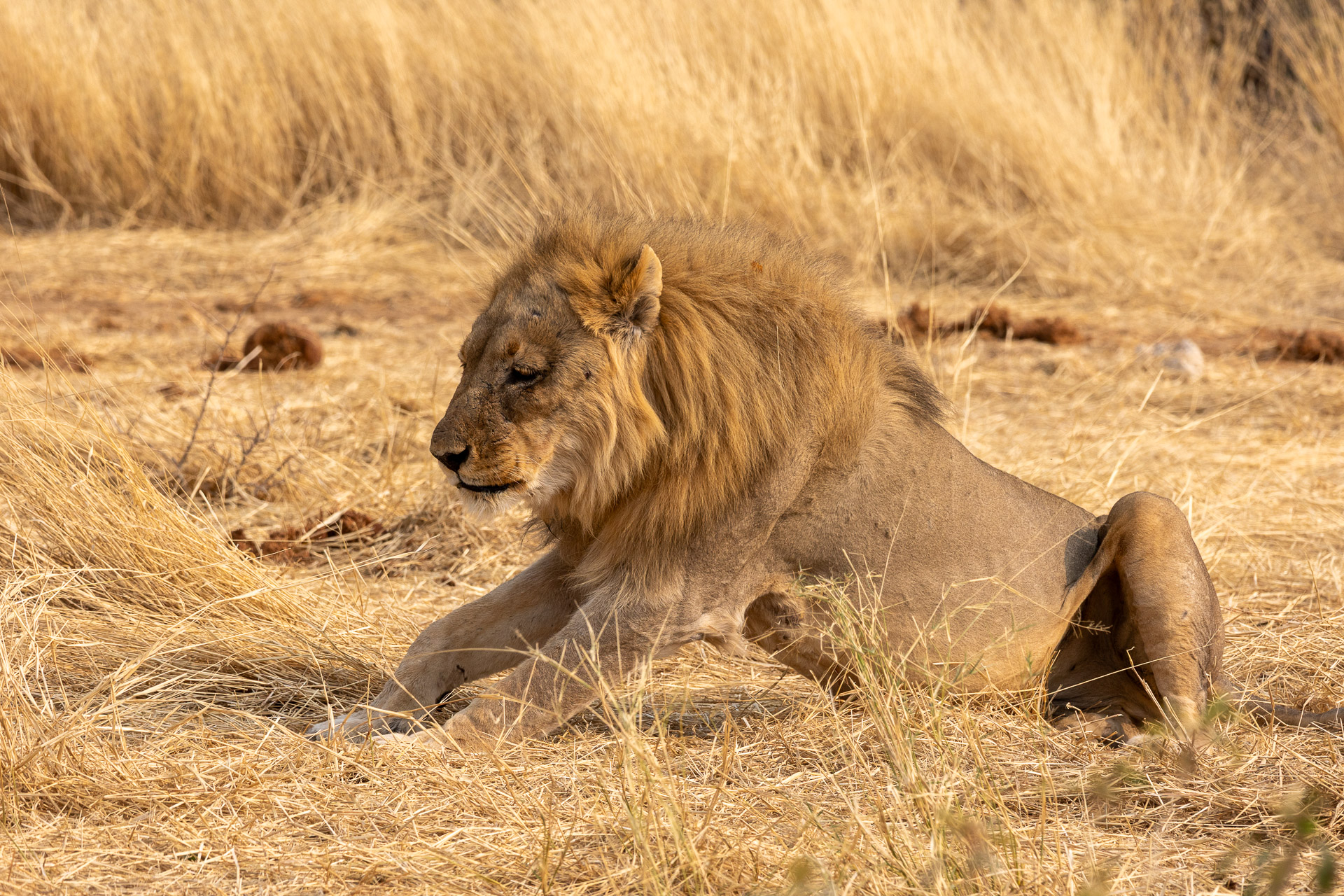 Gift holt uns wieder ab und wir sind alleine, da die Gäste aus dem Tented Camp verschlafen haben. Schon nach kurzer Fahrt treffen wir auf ein Löwenpärchen im Honeymoon, wie Gift uns erklärt. Der Löwe erlebt während der halben Stunde, die wir bei ihm stehen, 2 x seinen Honeymoon.