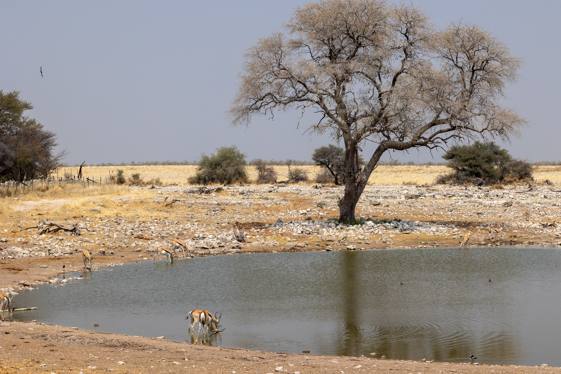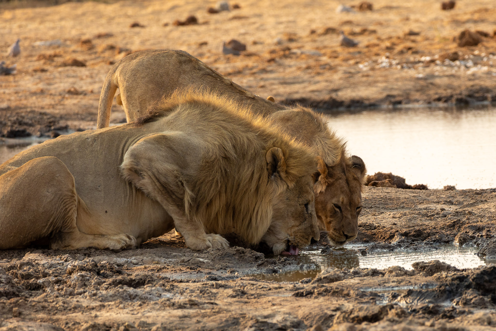 Mit einem letzten Besuch beim Wasserloch in Okaukuejo nehmen wir Abschied und verlassen den Etosha NP.