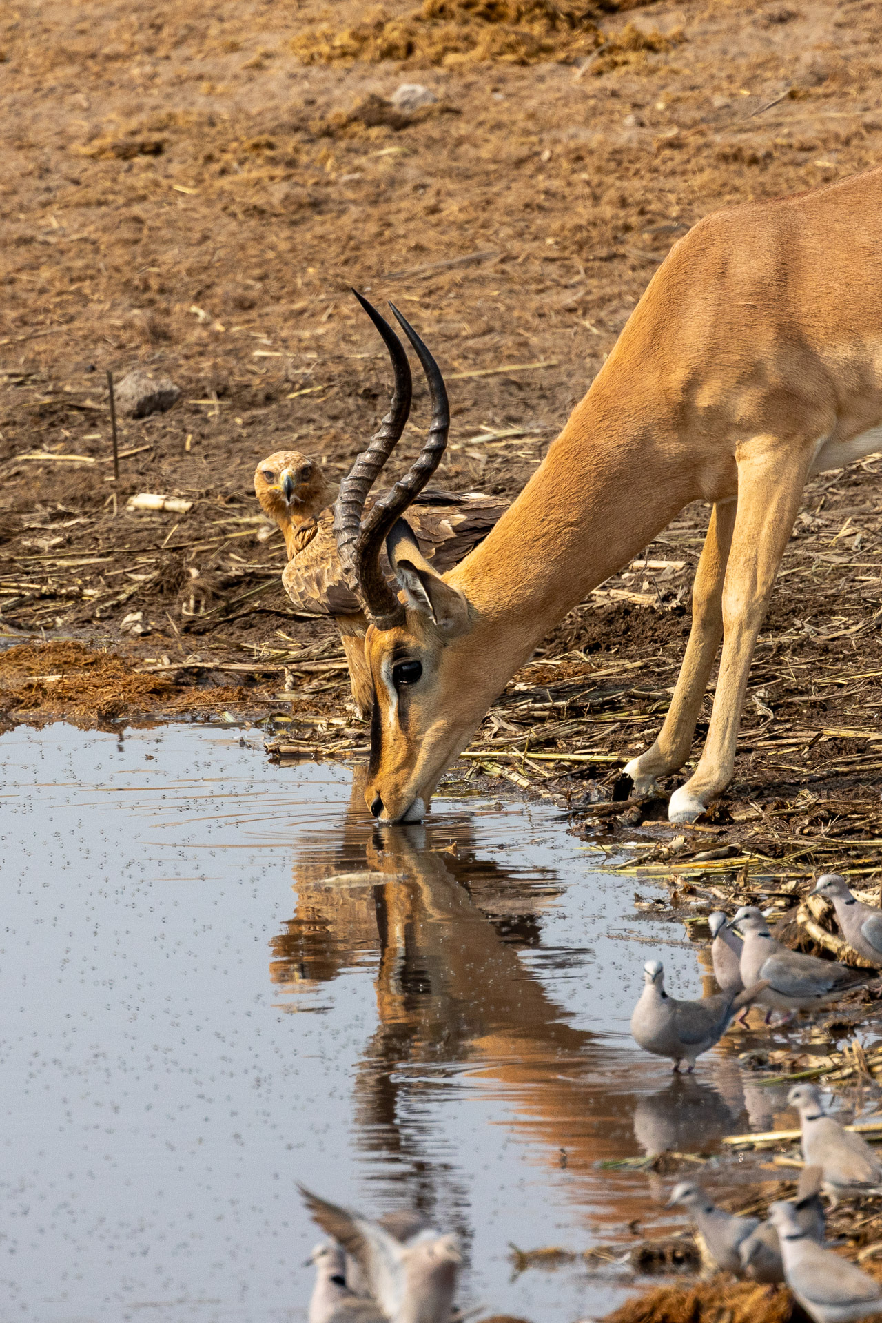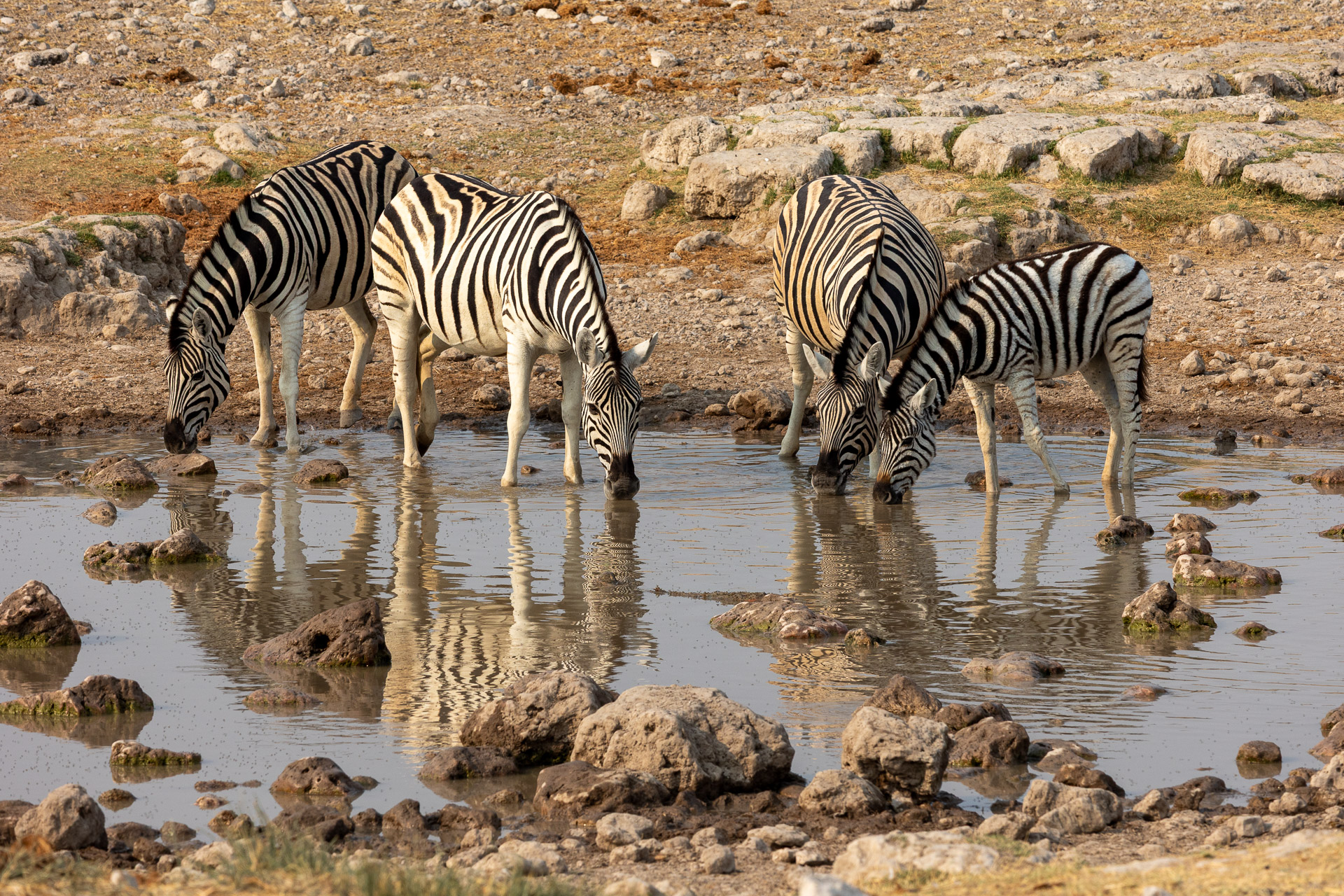 17:45 Uhr: zum Sonnenuntergang an das Wasserloch.