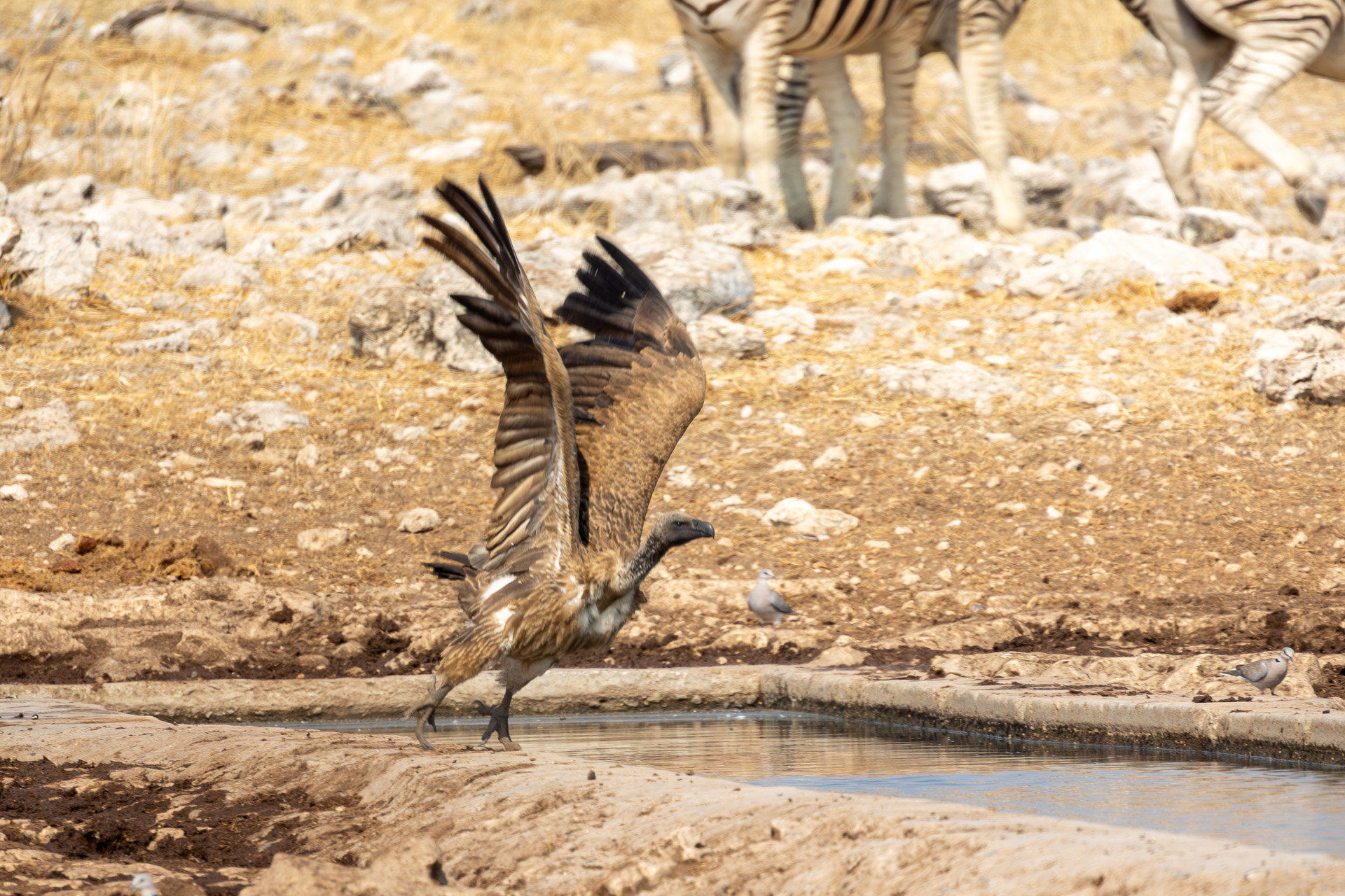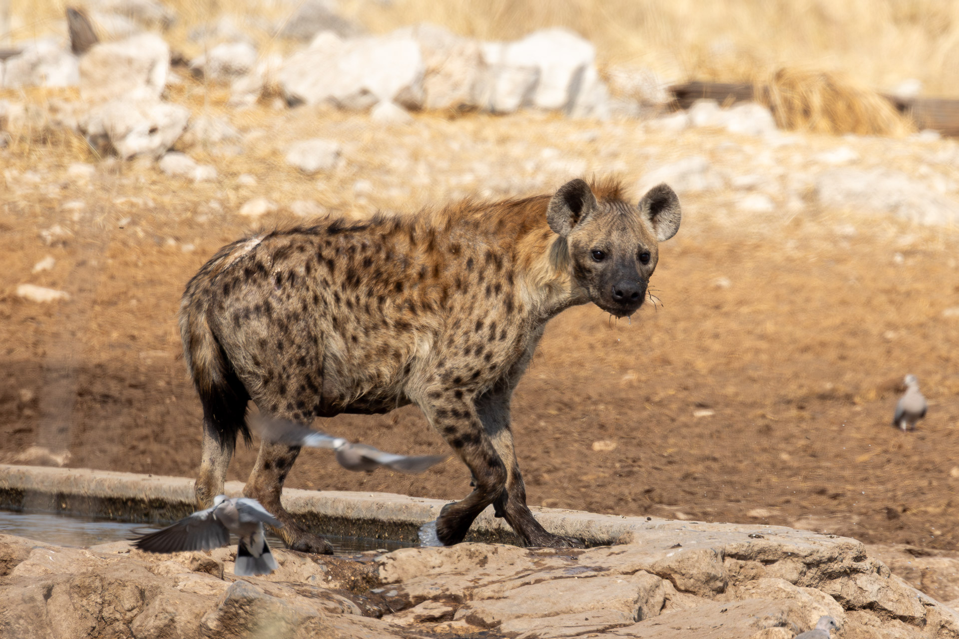 Es hat sich allerdings gelohnt, am Wasserloch sind Geier und zwei Hyänen.