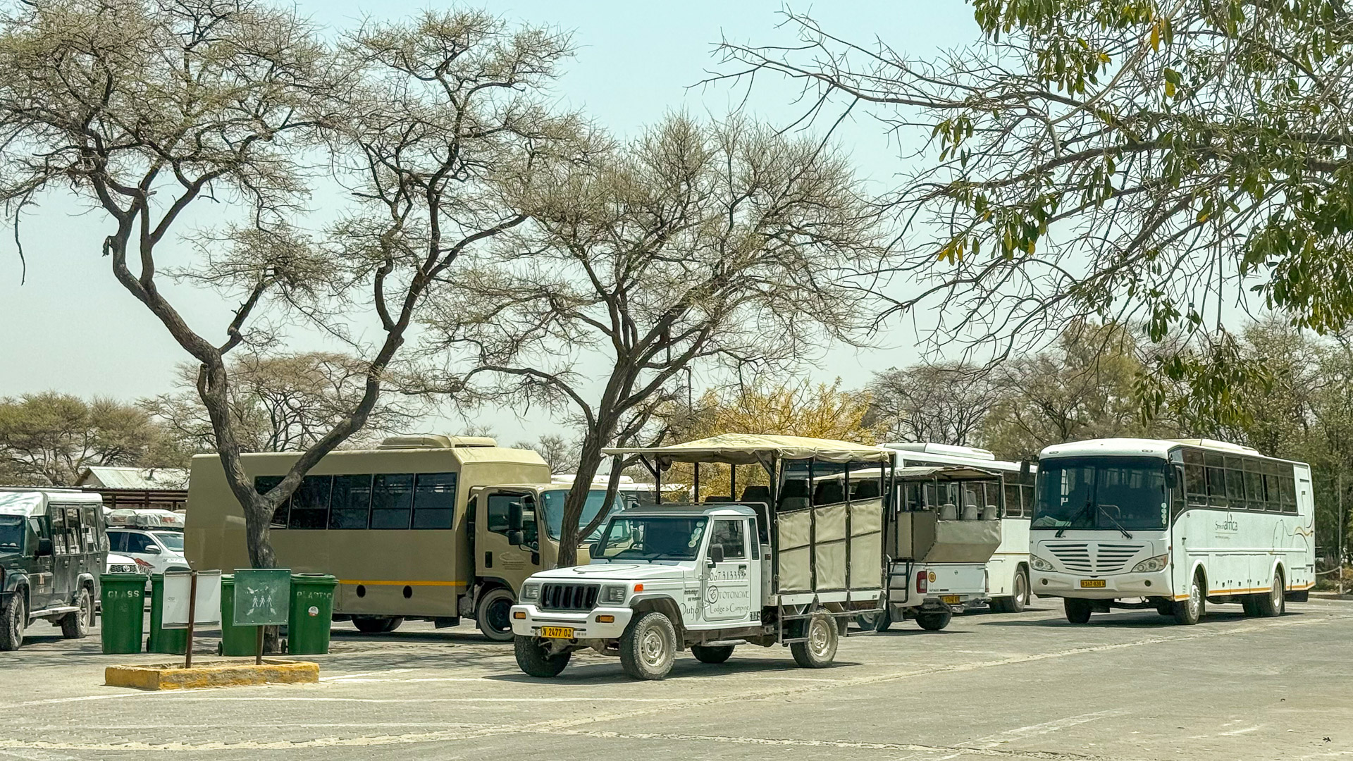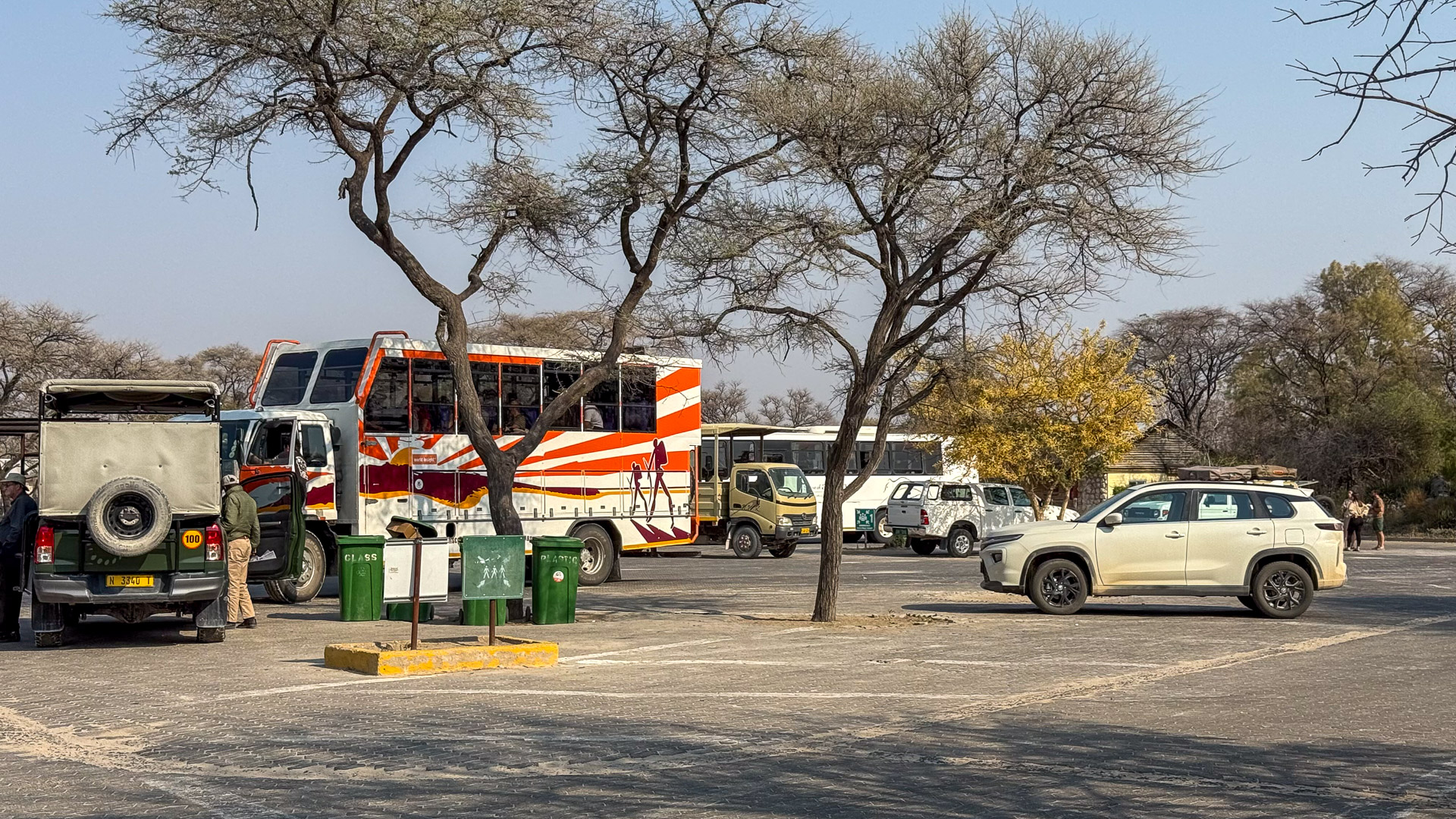Halali ist abschreckend. Voll mit Autos und Bussen… auf dem Weg durch den Park sind uns schon einige Busse (ca. 25-30 Plätze) entgegengekommen. Hier steht sogar ein richtig großer.