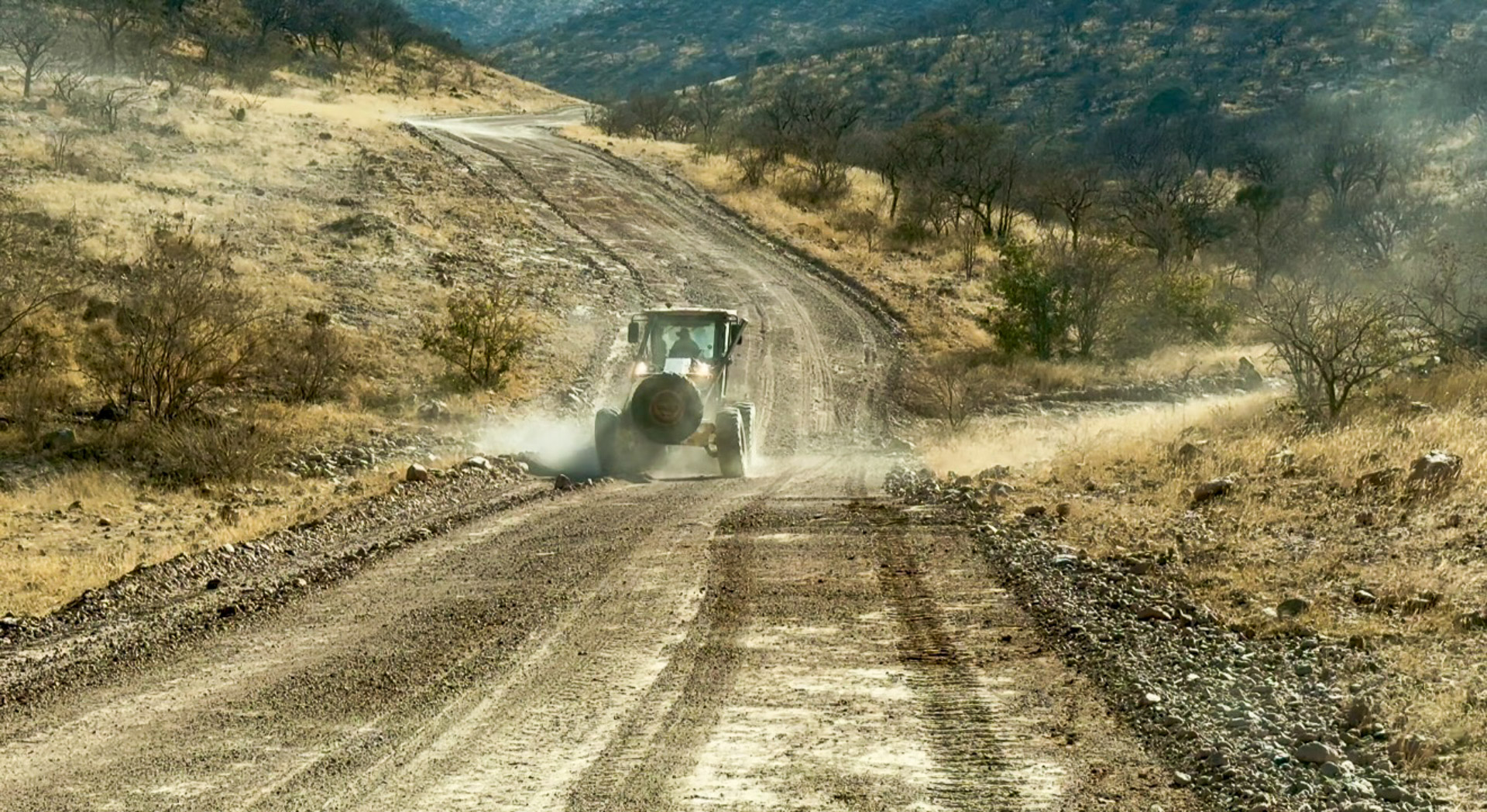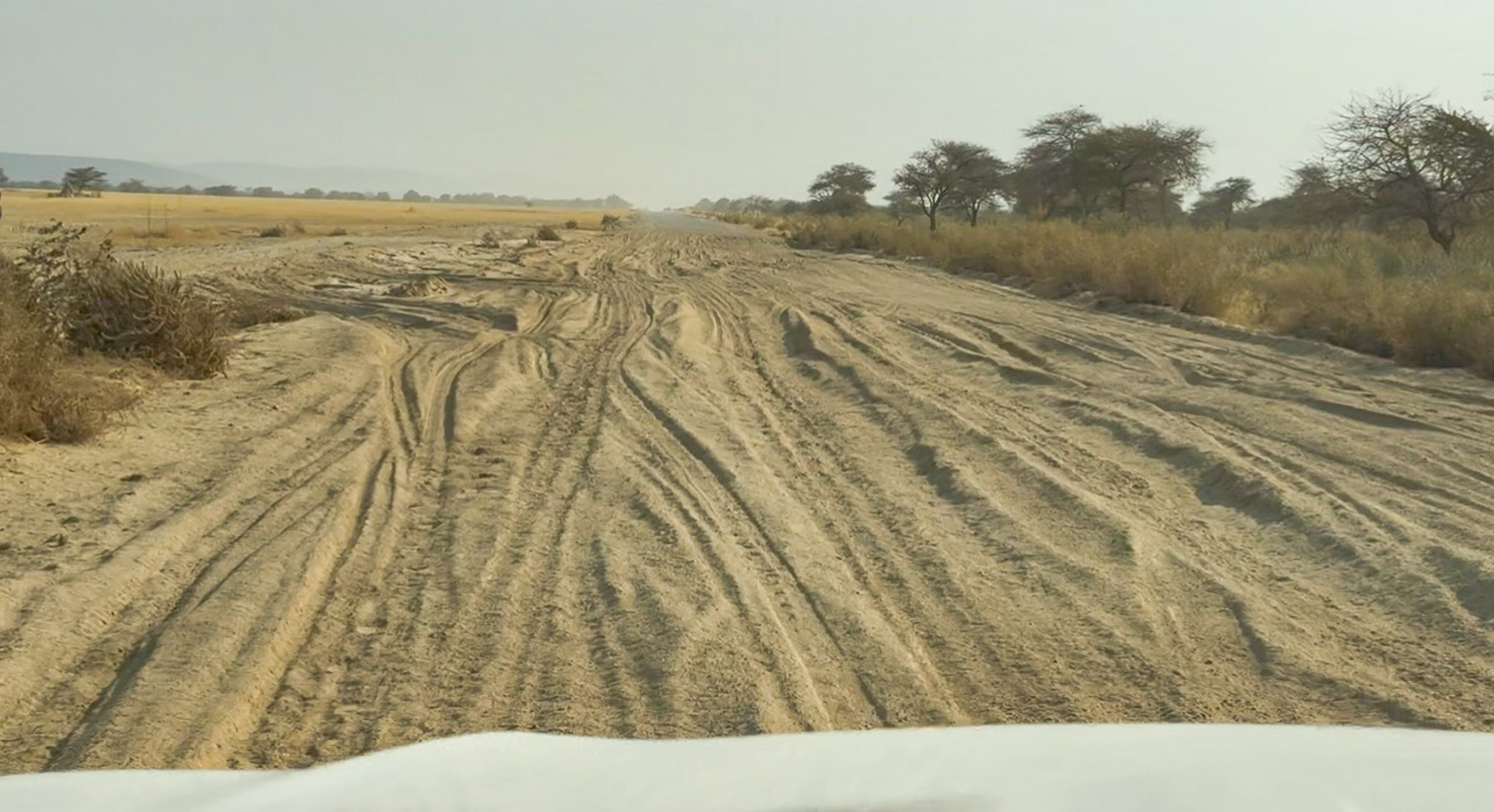Um Sprit zu sparen, bleibt die Klimaanlage aus, und das bei fast 30 °C Außentemperatur. Das letzte Stück der Hauptstraße nach Okaukuejo wird neu gemacht und wir müssen über Gemsbokvlakte einen Umweg fahren.