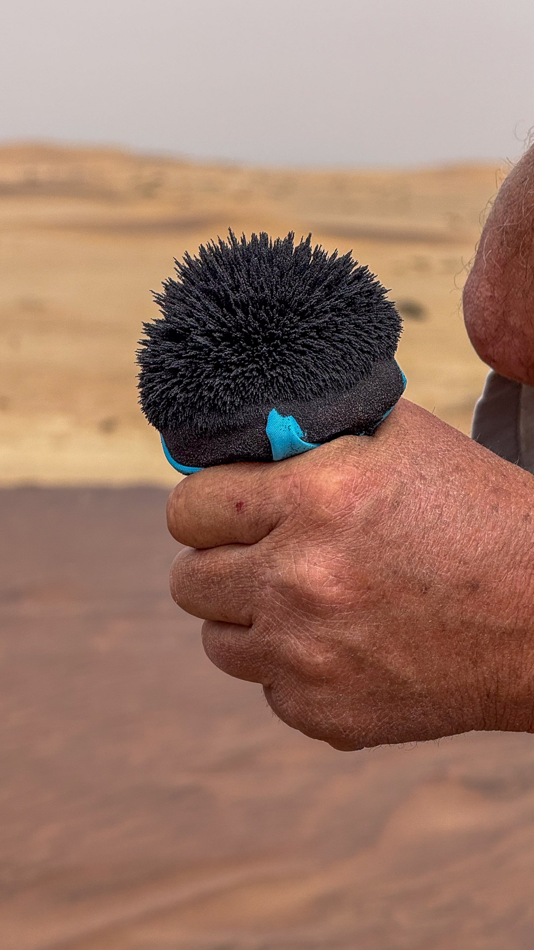 Während ich den restlichen Sand in der Dusche lasse, kümmert sich Dieter um die Kamera, reinigt, pustet Sand raus, nimmt alles auseinander ….. Es könnte sein, dass es gut gegangen ist, nur das Sandkorn auf dem Sensor muss noch rausgeholt werden.