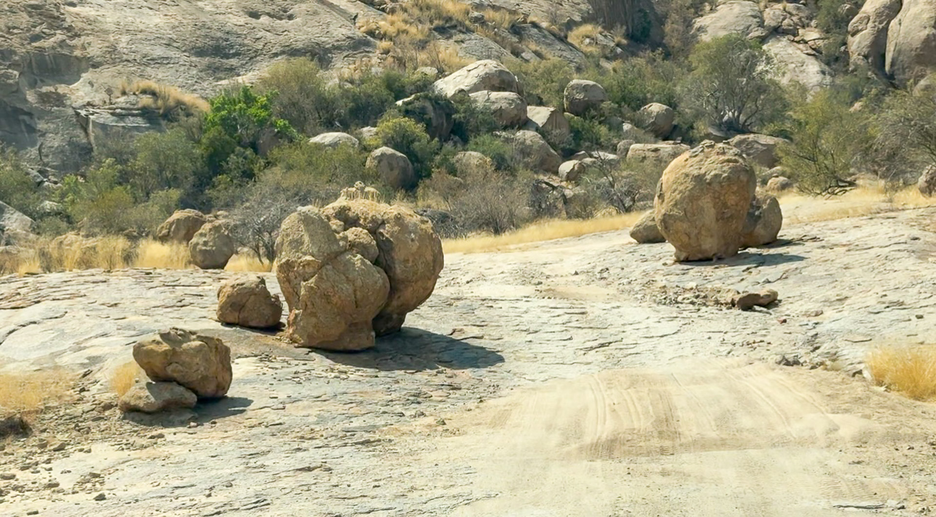 Über Outjo, Otjiwarongo und Kalkfeld führt uns die Strecke auf der C33, nach bis Omaruru. Nach dem Ort geht es auf die D 2315, eine Schotterpiste. Wir kommen an ein Gate mit der Aufschrift Erongo Mountain Nature Sanctuary.