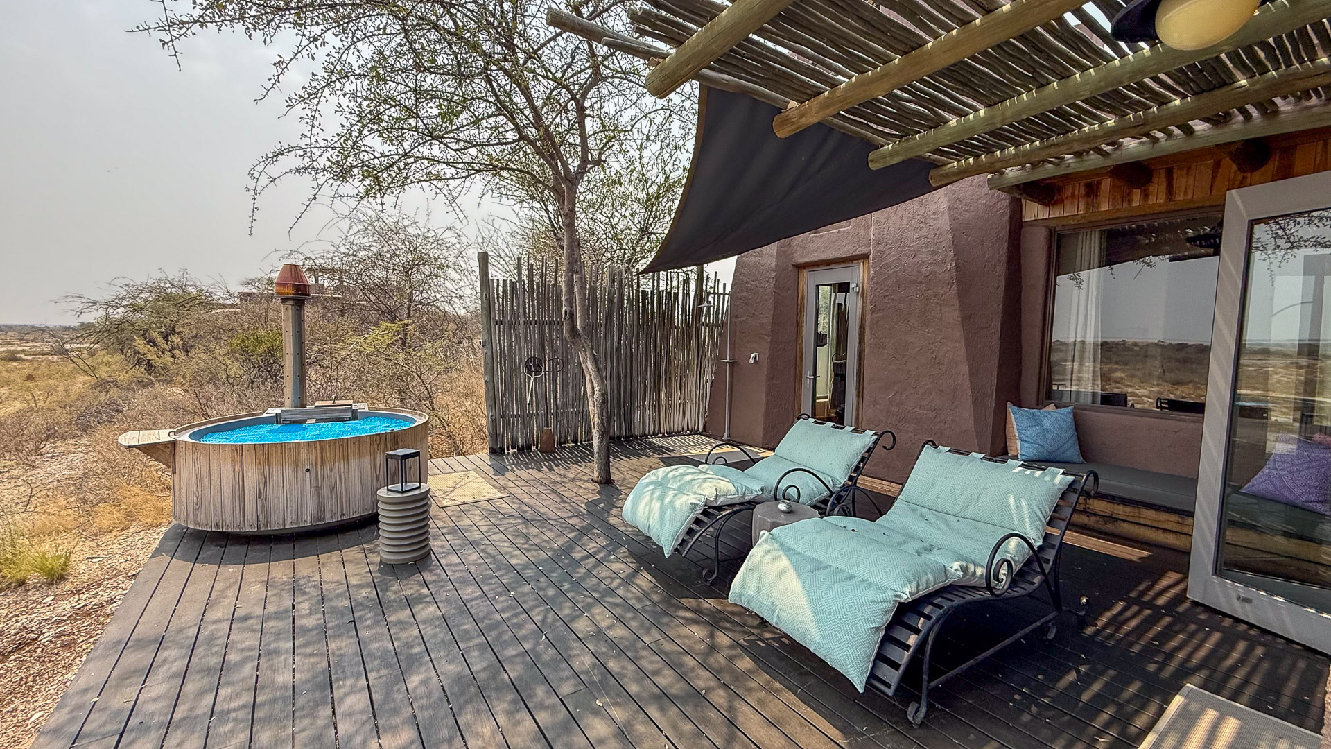 Ab 10 Uhr relaxen auf dem Zimmer, falls man die Bush Suite Nr. 3 überhaupt so nennen darf. Heute Nachmittag begeben wir uns auf unseren eigenen Sundowner Drive in den Etosha NP.