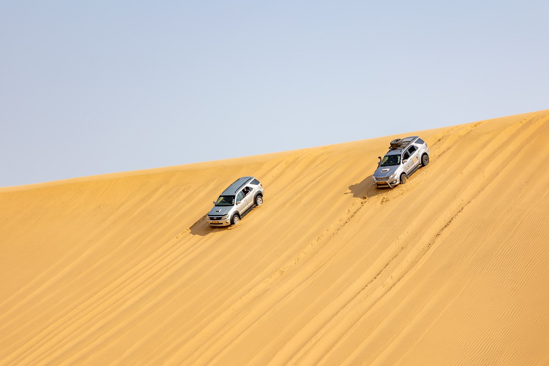 Nach der Salzgewinnungsfabrik verlassen wir die Straße und biegen links ab in die Dünen und damit in das Gebiet, in dem man ein Permit braucht und besser mit einer guided Tour unterwegs ist – hat man uns jedenfalls so vermittelt.